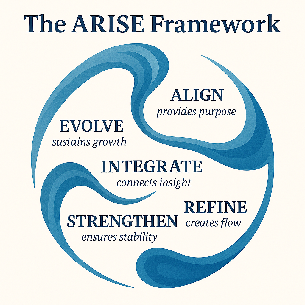 We use the full ARISE™ Framework to align your vision, streamline your operations, integrate performance systems, and build a culture that evolves — even under pressure.